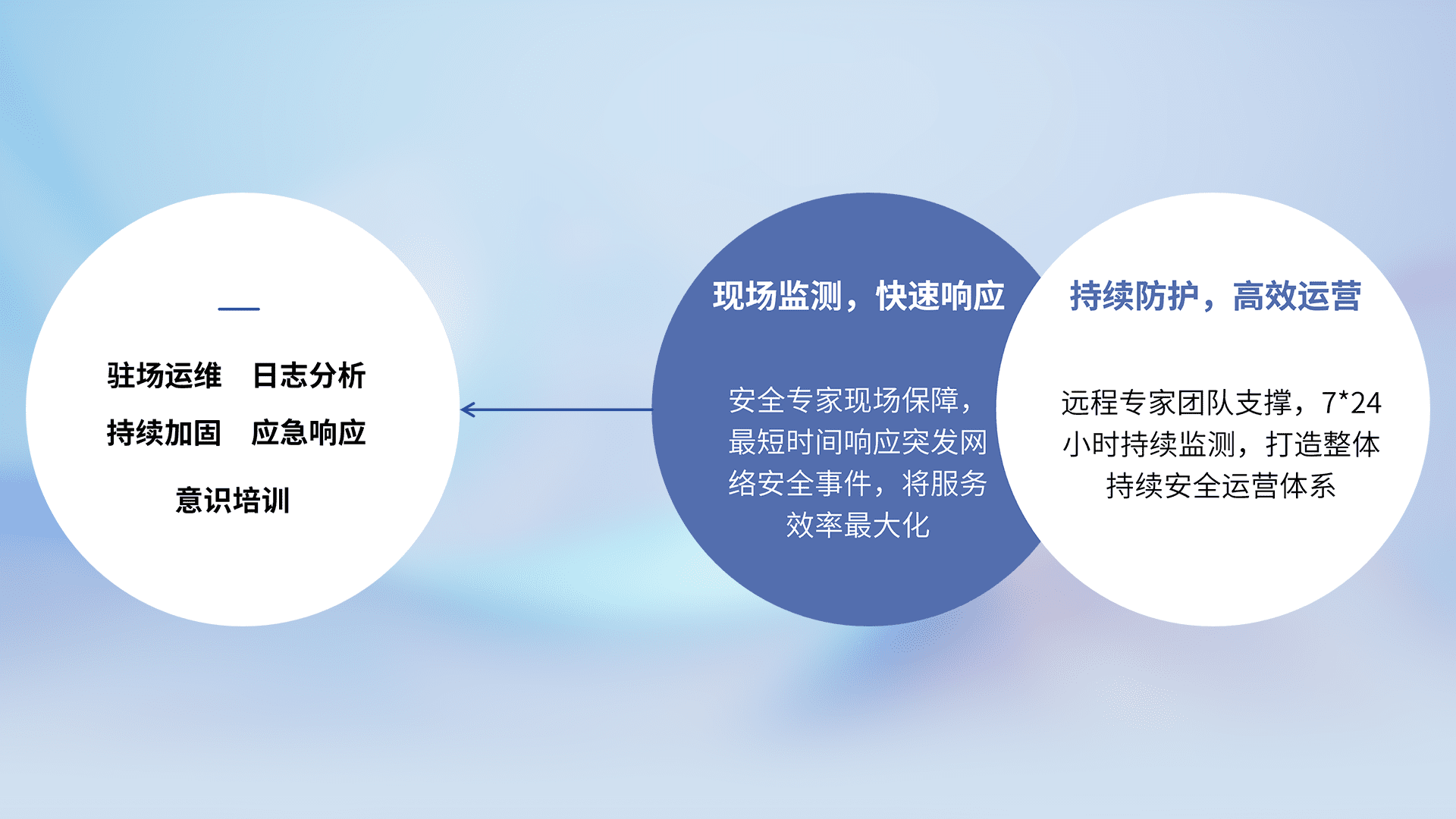 7X24小时持续监测安全事件,保持安全策略有效性,降低资产脆弱性风险,,精准拦截黑客攻击,,,减少被黑客利用的机会,,,,第一时间遏制,,,,降低损失。。。